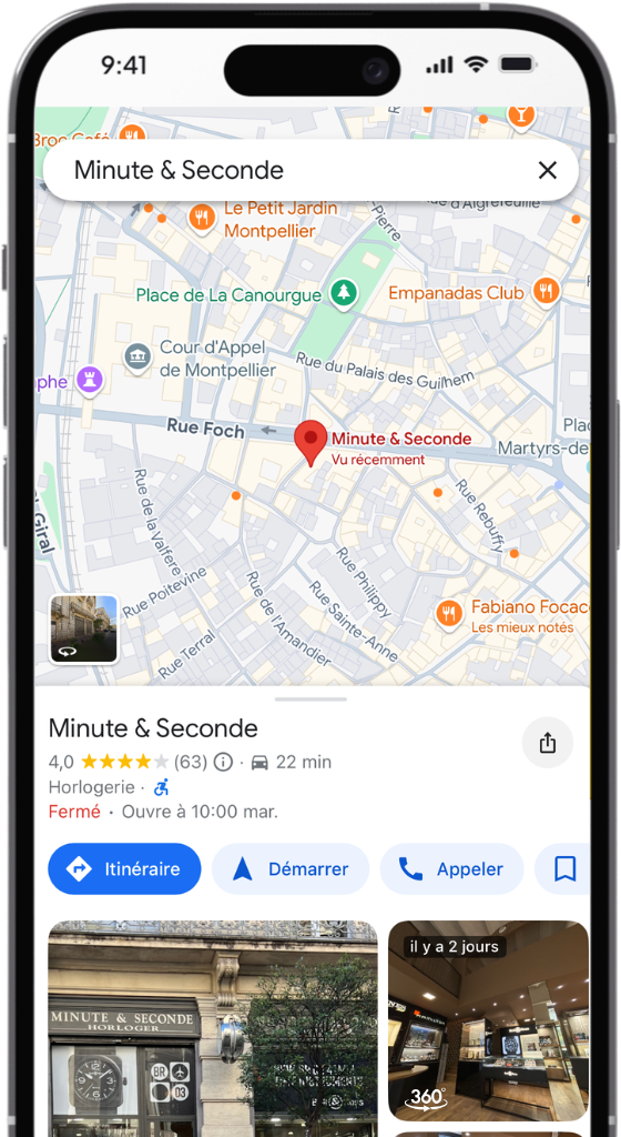 Nous ajoutons votre visite 360° directement à votre fiche Google Maps.